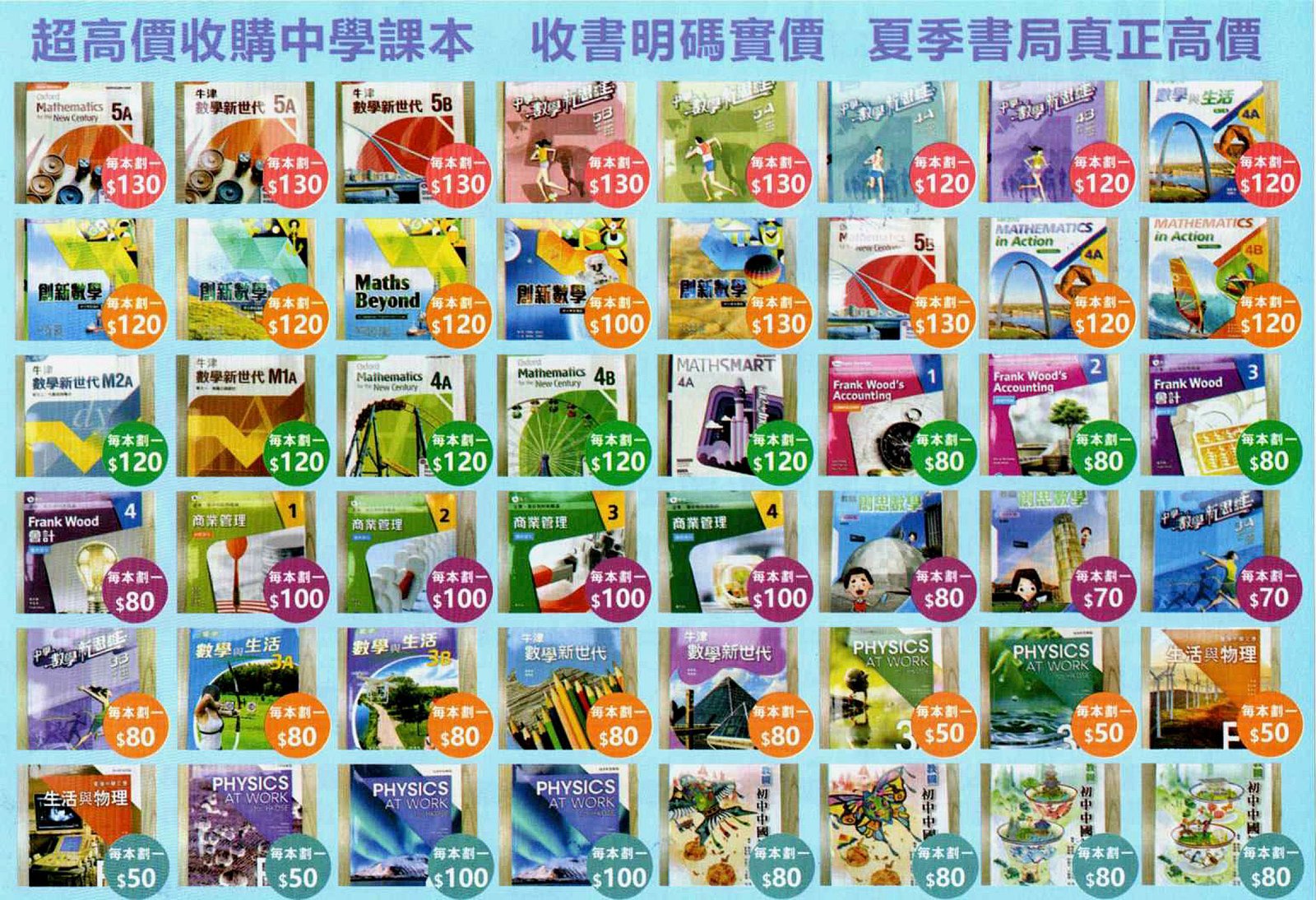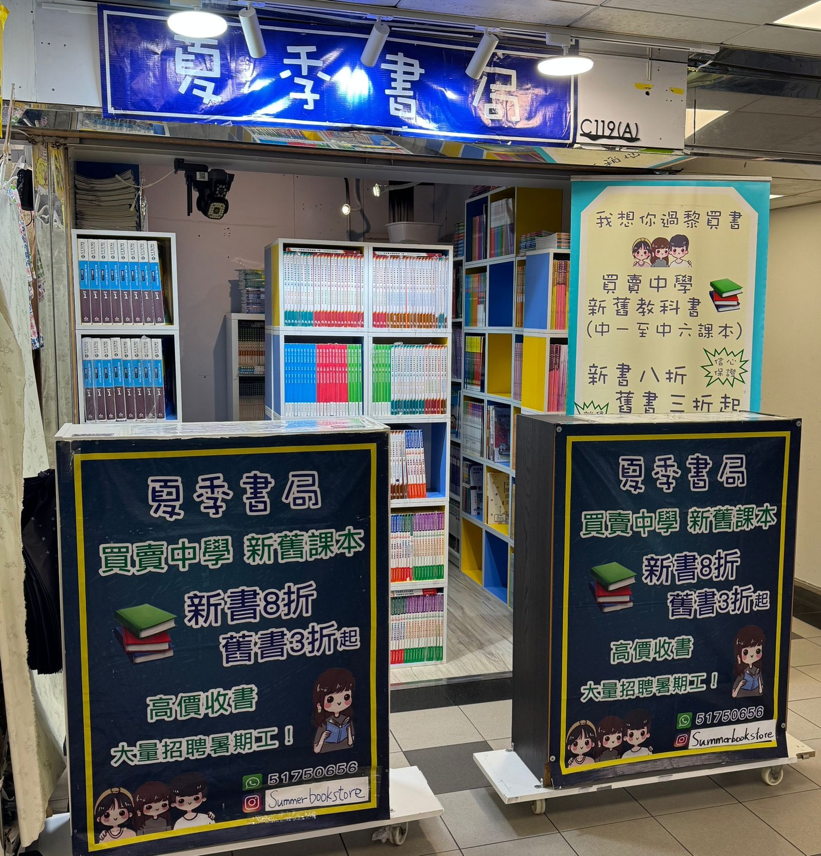 夏季書局SummerBookStore 超過13年經驗 買賣中學新舊課本✨超高價收購中學課本✨課本九成新品質保證✨收書明碼實價✨ WhatsApp 超高價收書 收書熱線:5175 0656 新書 85 折起舊書 25 折起 夏季書局大家庭 招聘暑期工!\ 時薪+獎金可達每小時 $100 / 歡迎加入夏季書局大家庭♥ 分店地址 葵芳總店 葵芳新都會廣場辦公大樓2座28樓2810室 葵芳分店 葵芳葵涌廣場2樓C101A鋪 藍田分店 藍田匯景商場4樓320號舖(近藍田站A出口)